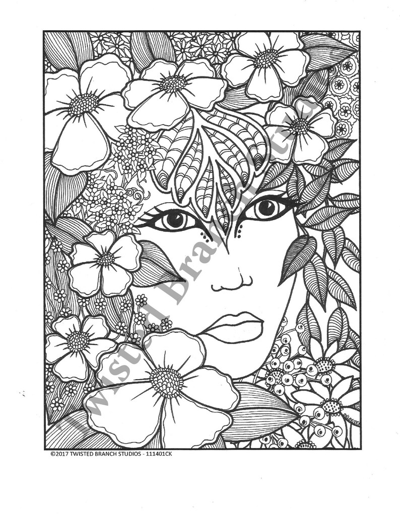 Nature Girl Adult Coloring Page Instant Digital Download Etsy